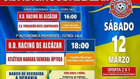 A domicilio el senior y juvenil de fútbol-sala y el femenino de fútbol-11 Todos los equipos del Racing de Alcázar retoman la competición liguera este fin de semana F.J. Parras 03/mar/22 20:22 Todos los equipos del Racing de Alcázar retoman la competición liguera este fin de semana