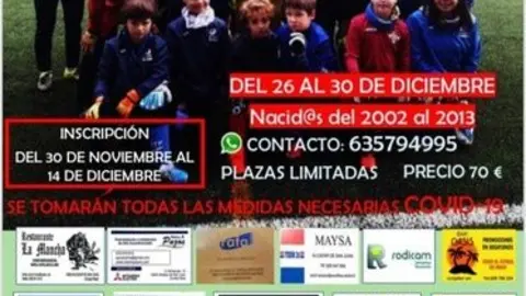 Que se celebrará del 26 al 30 de diciembre en Alcázar de San Juan Abierta la inscripción para el IV Campus de porteros y porteras de fútbol y fútbol-sala F.J. PARRAS 02/dic/20 17:33 Abierta la inscripción para el IV Campus de porteros y porteras de fútbol y fútbol-sala