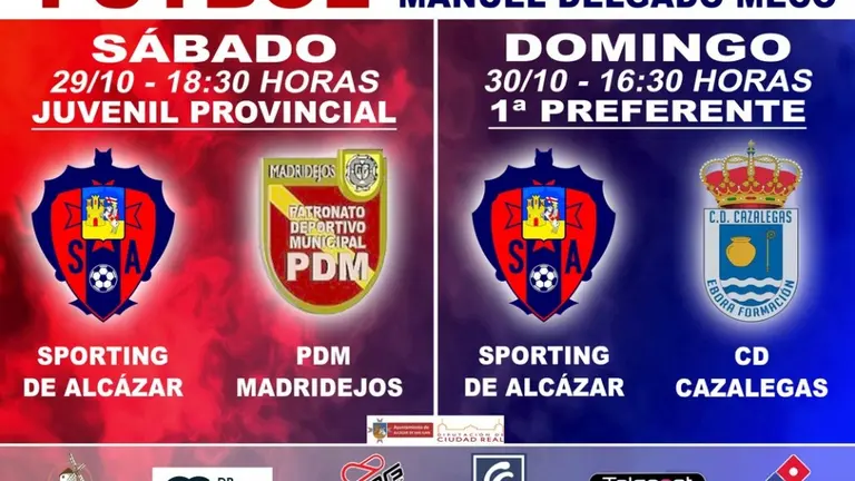 Este domingo a partir de las 16:30 horas en el Manuel Delgado Meco "Respeto, sí. Miedo, no", lema del Sporting de Alcázar para recibir a un imbatido Cazalegas F.J. Parras 28/oct/22 19:00 "Respeto, sí. Miedo, no", lema del Sporting de Alcázar para recibir a un imbatido Cazalegas
