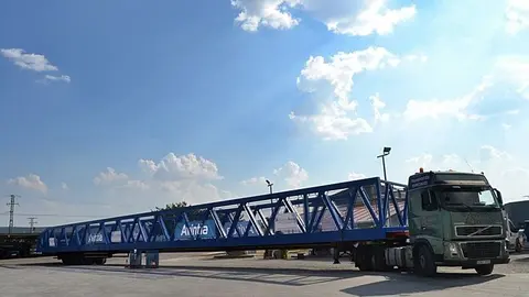 Un convoy especial con un pórtico de más de 40 metros sale desde Herencia con destino a Leganés