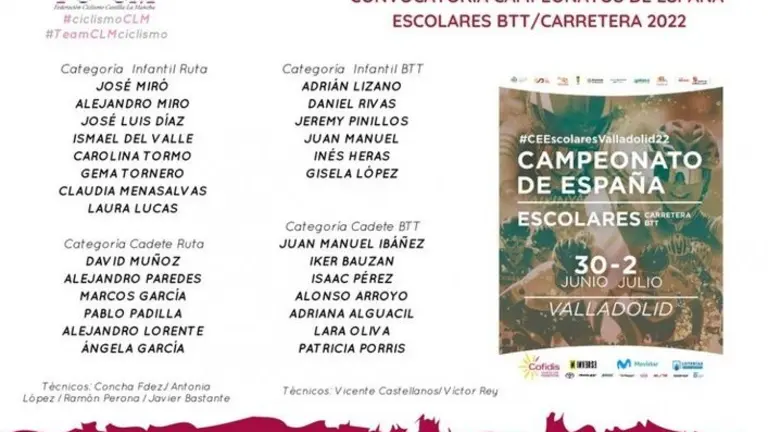 INFORMA LA FCCLM/RFEC Siete ciclistas integran la selección de Castilla-La Mancha para el Campeonato de España de Carretera Élite-Sub23 de Mallorca 2022 El Semanal 22/jun/22 14:45