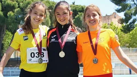 A la derecha Marta sonriente con su medalla de bronce Marta Beatriz Ceballos, bronce en el regional de triple salto elsemanaldelamancha.com 12/may/17 14:11