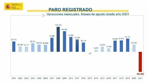 Caída histórica del paro registrado en agosto: desciende en 82.583 personas