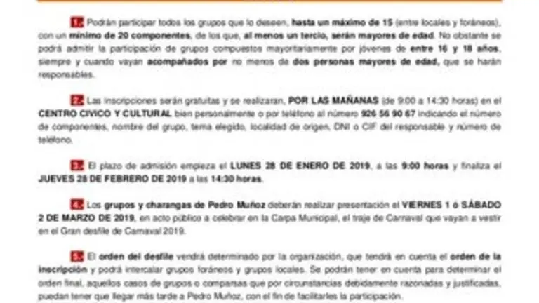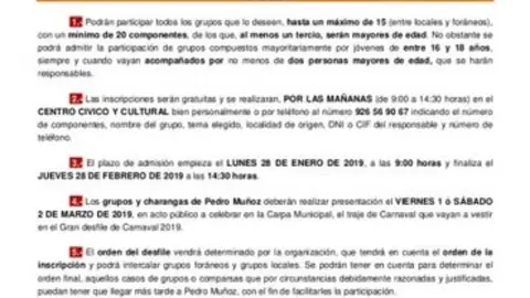 Pedro Muñoz convoca el concurso del cartel anunciador de su Carnaval 2019