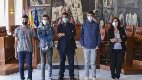 Los tres alumnos seleccionados en la LVII Olimpiada Matemática Española, recibidos en la Diputación