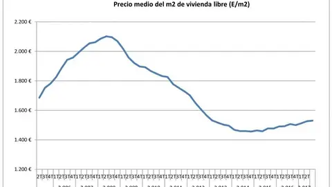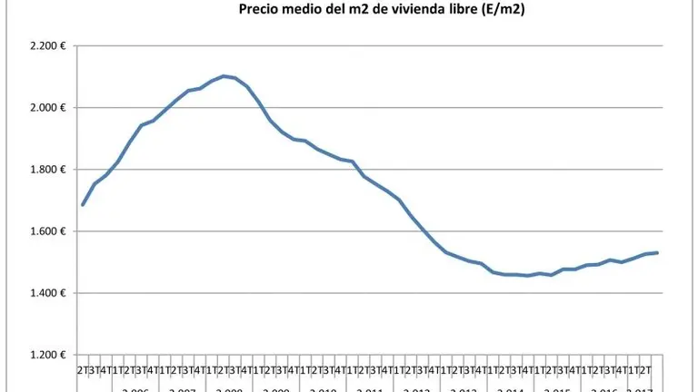 Estadística del valor tasado de la vivienda El precio medio del m2 de la vivienda libre en España se situó en 1.530 euros en el segundo trimestre de 2017 R. Tejera 19/sept/17 13:50 El precio medio del m2 de la vivienda libre en España se situó en 1.530 euros en el segundo trimestre de 2017