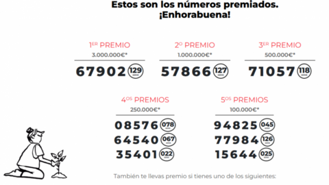 Primer premio del Sorteo de Oro de Cruz Roja al nº 67902 de la serie 129