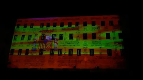 Las Cortes de Castilla-La Mancha celebran el Día de la Constitución con una proyección de la bandera española sobre su fachada principal