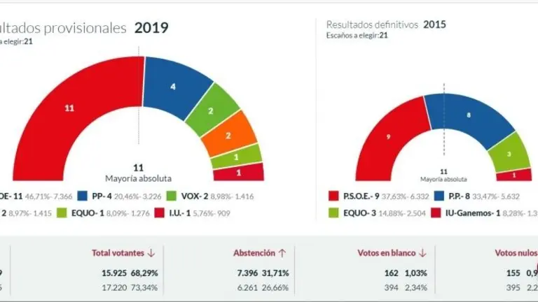 La participación ha sido del 68,31%, frente al 73,34 del 2015 (han votado 14.935 personas)