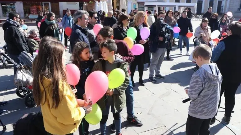 La Plaza de España llena de globos y emoción el acto de conmemoración del Día Internacional de la Lucha contra el Cáncer Infantil