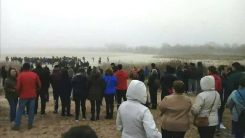 Esta mañana, un buen número de vecinos ha participado en la concentración "Sin agua no hay futuro" Cadena humana en Villafranca para defender el agua y los humedales manchegos R. Tejera 09/feb/20 13:22 Cadena humana en Villafranca para defender el agua y los humedales manchegos