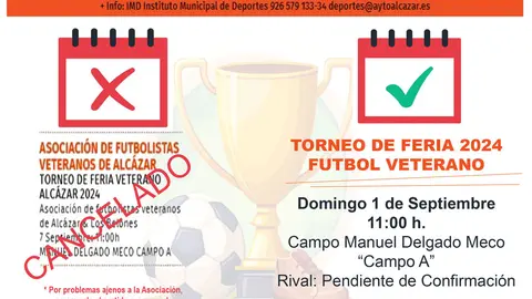 SE CELEBRARÁ EL DÍA 1 DE SEPTIEMBRE, A PARTIR DE LAS 11 HORAS EN EL DELGADO MECO Cambio de día para el Trofeo de Feria Fútbol Veterano El Semanal 23/ago/24 11:47