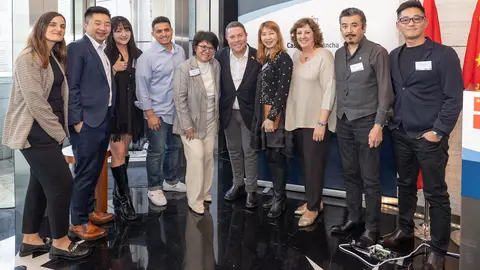El presidente de Castilla-La Mancha hoy en las instalaciones de Huawei, en Pekín, con representantes empresariales y sindicales de la Comunidad Autónoma
