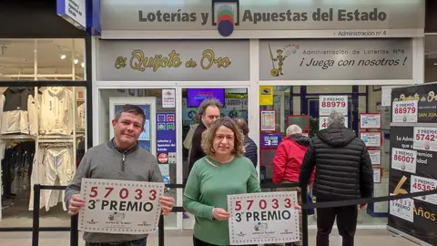 AL NÚMERO 57033, VENDIDO EN VENTANILLA EN LA ADMINISTRACIÓN DE CARREFOUR El tercer premio de "El Niño" también cae en Alcázar de San Juan Rosalinda Tejera 06/ene/24 13:44